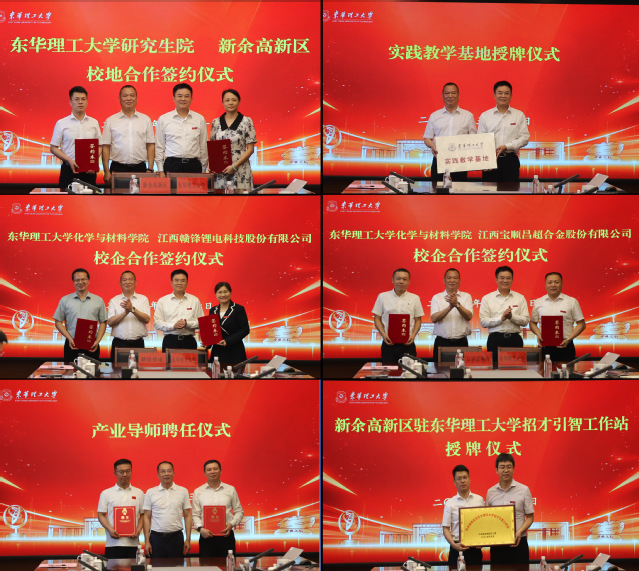 活动现场,校地双方签署了研究生联合培养、校企合作等多项协议,并互授“新余高新区驻开云手机端·官方版在线招才引智工作站”和“实践教学基地”牌匾。杨波为新余市两位技术专家颁发“产业导师”聘书。