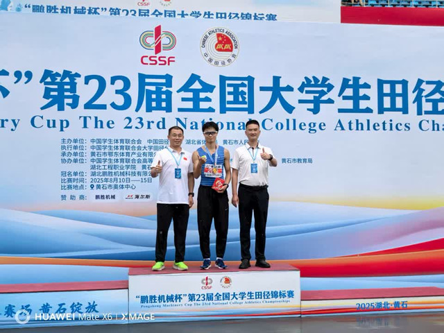 本次比赛竞争激烈,朱亚坤在预赛中暂列第三名。决赛阶段,面对湿滑赛道和雨天作战的双重考验,他沉着应战、高水平发挥,最终率先冲过终点,充分展现了“不畏强手、敢于突破”的竞技精神和过硬的心理素质。这是他继两届获得全国大学生田径锦标赛丙组冠军后,在更高竞技组别取得的重要突破。
