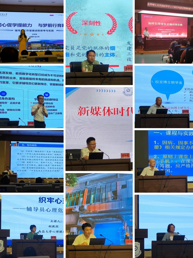 本次培训由学校党委组织部、党委党校、党委学生工作部、党委研究生工作部联合举办,采取专题解读、个人自学、分组研讨、集中交流相结合的方式开展。培训邀请了上级教育主管部门负责人,以及来自中国矿业大学、南昌大学、华东交通大学等高校长期从事学生教育工作的专家学者进行专题辅导。培训内容涵盖新时代高校辅导员的使命与担当、高水平创新创业竞赛、高校辅导员工作室、思想政治教育学科学术论文选题与写作规范、辅导员心理危机干预、AI赋能高校辅导员工作提质增效等多个方面。学校相关职能部门结合工作职责开展了业务辅导。