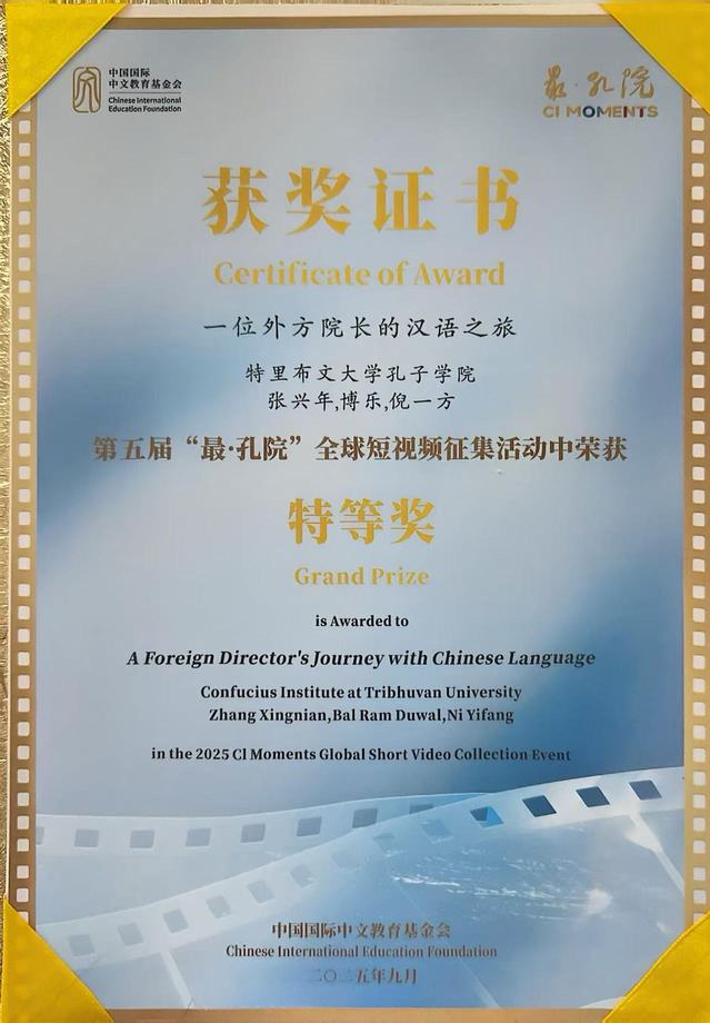 9月25日,第五届“最·孔院”全球短视频征集活动颁奖仪式在北京举行。由开云手机端·官方版在线和青海民族大学共建的特里布文大学孔子学院选送的作品《一位外方院长的汉语之旅》斩获全球特等奖,外方院长博乐获评“孔院达人”。