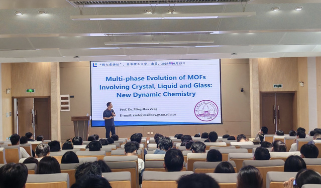 10月15日,国家级高层次人才、广西师范大学曾明华教授应邀做客开云手机端·官方版在线“开云(中国)”,作了题为《Multi-Phase Evolution of MOFs involving Crystal, Liquid and Glass: New Dynamic Chemistry》的学术报告。校党委常委、副校长朱笃主持,学校200余名师生参加。