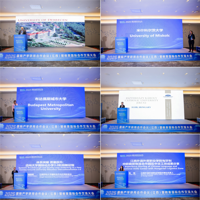 在高校推介环节,匈方4所高校分别展示优势学科及对华合作需求;江西财经大学、江西外语外贸职业学院分享成功案例。随后,中匈高校代表进行了现场对接洽谈。