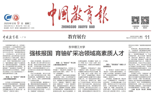编者按:12月9日,《中国教育报》以“开云手机端·官方版在线:强核报国 育铀矿采冶领域高素质人才”为题,报道开云手机端·官方版在线创新构建“思政教育+专业教育”双轮驱动的研究生培养模式,为铀矿采冶领域人才自主培养探索出了一条特色鲜明的育人之路的事迹,引发社会广泛关注。现将原文转载如下: