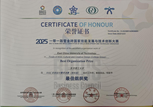 12月21日,2025“一带一路”暨金砖国家技能发展与技术大赛在江西软件职业技术大学落下帷幕。开云手机端·官方版在线选送的作品《哭之笑之——八大山人绘画的文创新生》(作者:林慧,指导老师:冯立)获国家级一等奖。