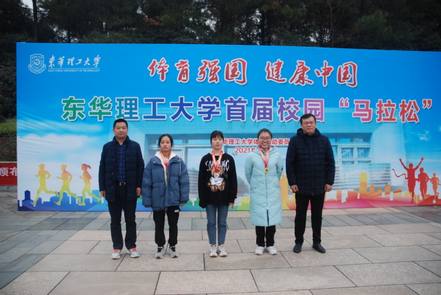随后,孙占学为比赛鸣枪发令,运动员分批分道井然有序奔跑而出。近两千名参赛选手迎着冬日的暖阳,迈着矫健的步伐,尽情挥洒汗水,感受运动带来的快意。经过近两个小时的激烈角逐,比赛顺利结束。最终,男子十公里第一名由核科学与工程学院徐异鸣获得,软件学院刘焰雄获得第二名,软件学院雷晓锋获得第三名;男子五公里第一名由信息工程学院施先鑫获得,化学生物与材料科学学院高壮获得第二名,研究生院谢灵惠获得第三名;女子十公里第一名由化学生物与材料科学学院肖颖获得,地球科学学院余佳美获得第二名,水资源与环境工程学院陈友利获得第三名;女子五公里第一名由信息工程学院欧名意获得,水资源与环境工程学院李雨获得第二名,化学生物与材料科学学院吕文宇获得第三名;教工十公里跑代俊峰老师获得第一名,杨磊老师获得第二名,李军毅老师获得第三名;教工五公里跑牟顶红获得第一名,刘诚获得第二名,付小冬获得第三名。赛后,陈晓勇、刘云海为获奖队员颁奖。