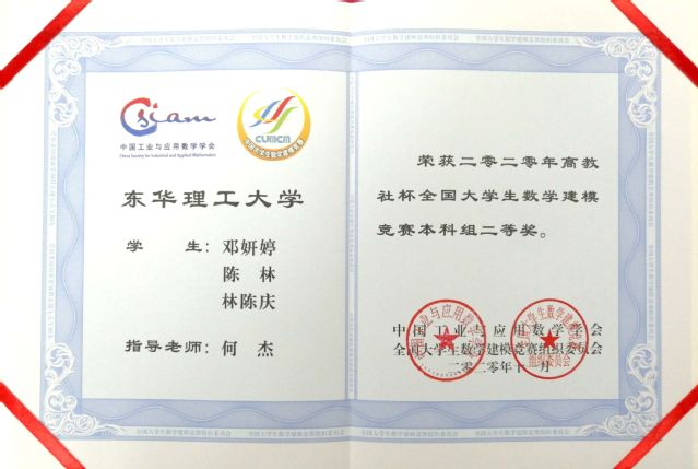 近日,2020年全国大学生数学建模竞赛获奖名单揭晓,我校学子在本科数学建模项目中凭借扎实的知识、良好的团队合作、勇于创新和拼搏进取的精神,取得了全国二等奖2项,省一等奖8项、二等奖9项、三等奖16项,团体总分全省第三名的优异成绩。