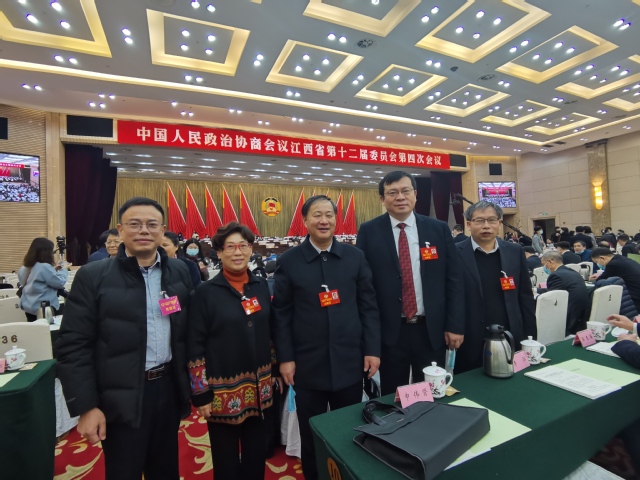 我校教师省政协常委、政协教科卫体委员会副主任徐跃进,省政协常委、致公党江西支部主委陈晓勇,省政协委员潘家永、邹丽霞等参加会议。徐跃进、陈晓勇在主席台就座。