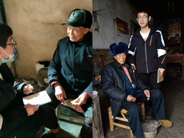 “没有共产党就没有新中国。在党的领导下,我们的生活越来越好。现在全社会都在弘扬抗美援朝精神,这给了我们这些老兵很大的精神鼓舞!”艾精术老人一边骄傲地展示着“中国人民志愿军抗美援朝出国作战70周年”纪念章,一边感谢党和国家的好政策。化学生物与材料科学学院的邹俊杰同学选择的作业任务是寻访抗美援朝退伍老兵。他专程来到江西省吉安市永丰县沿陂镇,看望并采访了抗美援朝老兵艾精术和李永富。“当时我爸妈死活不同意,因为就我一个儿子。后来看到从小玩到大的伙伴都去参军了,我想以后他们就看不起我了,就逼着父母同意了。”回忆当年报名入朝参战的故事,李永富老人依然历历在目。采访结束后,邹俊杰同学被两位老兵的深深感动了,“亲耳听到两位爷爷讲述战斗故事,亲眼看到爷爷身上的枪伤,我不禁热泪盈眶。他们的话语很朴实,但他们为了祖国抛头颅洒热血的坚定信念却无比高尚!”