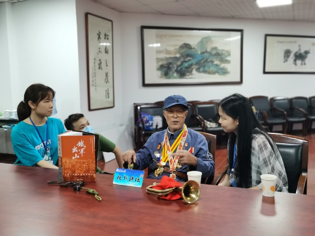 在访谈环节,五位老兵齐上讲台,与同学们面对面交流,现场气氛热烈而融洽。“您为什么要参军?”“我们当年的武器装备有哪些?”“在朝鲜战场上,哪件事让您印象最深刻?”……红色种子在问答间播撒,红色基因在感动中传承。