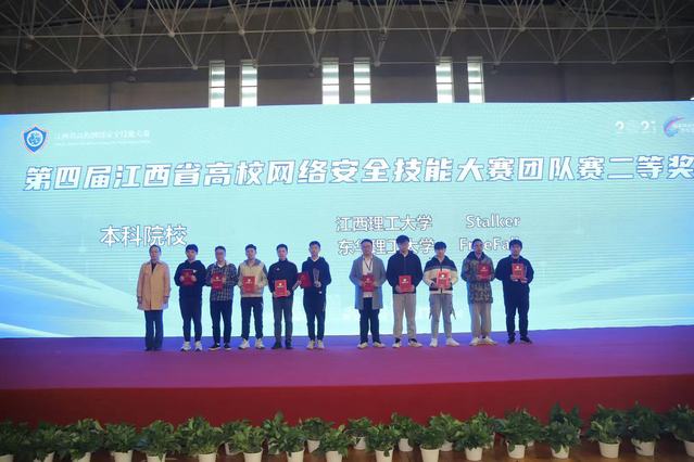 颁奖仪式上,刘云海代表学校致辞。何少加代表主办单位对高校网络安全人才培养工作提出三点要求:一是要常态化开展网络安全教育;二是要落实网络安全主体责任;三是要加大网络安全人才培养力度。颁奖仪式结束后,大赛协办方深信服科技有限公司、远江盛邦(北京)网络安全科技股份有限公司、江西中和证信息安全技术有限公司、杭州安恒信息技术股份有限公司现场颁发了入职邀请函,为参赛选手提供了优质的网络安全就业岗位。