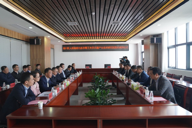 11月18日上午,我校与抚州市临川区人民政府共建产业技术研究院签约仪式在抚州市临川区高新科技产业园举行。抚州市副市长汪华辉,抚州市临川区区委书记董东明,抚州市临川区区委副书记、区长李群彪,抚州市临川区副区长张向阳,校党委副书记、校长孙占学,校党委常委、副校长刘云海出席仪式。签约仪式由李群彪主持,刘云海、张向阳分别代表双方签署协议。学校科研与科技开发处、省部共建办、开云手机端·官方版在线国家大学科技园、机械与电子工程学院、科技成果转化与技术转移中心等部门负责人一同参加仪式。