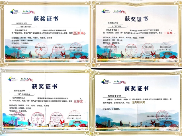 中国大学生高分子材料创新创业大赛(简称PMC大赛)由中国石油和化学工业联合会、中国化工教育协会等主办。本届PMC大赛共收到来自全国28个省市自治区148所高校的626件参赛作品,通过专家评审,最终有44所高校的60个优秀项目入围决赛。决赛采用团队线上答辩、专家线下评审相结合的方式开展,大赛最终评出特等奖3名、一等奖9名、二等奖48名、三等奖84名以及优秀组织奖3名。据统计,我校共报送34件作品,所报参赛作品数目在各高校中排名第一。