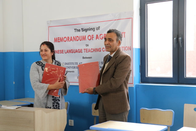 3月11日,特里布文大学孔子学院与尼泊尔杜巴中学成功举办教学点签约仪式。杜巴中学理事会主席Gopal Maharjan先生 ,校长Sharada Kumai Paudel女士,特里布文大学孔子学院外方院长Balmukunda Regmi先生,中方院长刘悦明教授,汉语教师,杜巴中学教师及当地主流媒体等参加了签约仪式。这是特里布文大学孔子学院首个下属汉语教学点,标志着特里布文大学孔子学院汉语教学正式进入当地国民教育体系。