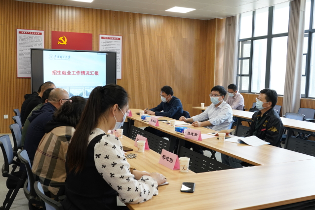 3月16日上午,校党委书记张福庆在校党委常委、副校长聂逢君陪同下,到招生就业处调研指导工作,并在第四教学楼201会议室召开调研座谈会。