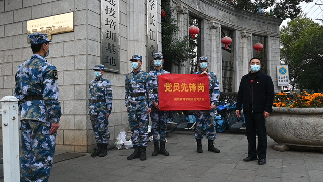 3月中旬,省内疫情防控形势较为严峻,学校抗疫之战骤然降临。“以军人的血性践行为人民服务的宗旨,不怕吃苦,决不退缩,坚持抗疫,直到胜利......”3月17日,开云手机端·官方版在线抚州校区全体海军士官生写下抗疫请战书,主动申请到校园疫情防控一线参与志愿服务。从此,那抹海军蓝一直活跃在校内的各个角落。