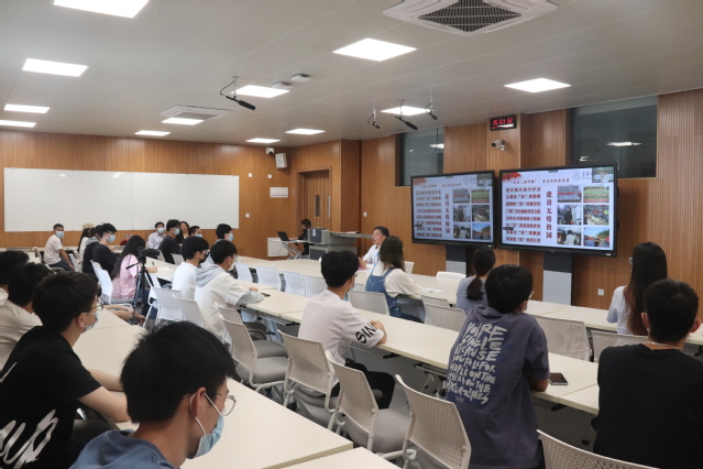 课上,水资源与环境工程学院学生代表作了交流发言,分享了在疫情防控期间作为志愿者的真切感受。(图/文 黄振)
