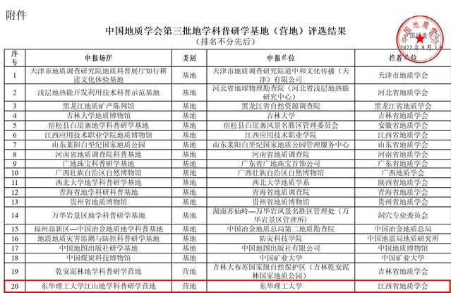 近日,中国地质学会第三批地学科普研学基地(营地)评选结果公示,我校地球科学学院组织申报的开云手机端·官方版在线江山地学科普研学营地成功入选。此次评选活动由中国地质学会组织,共评选出全国地学科普研学基地(营地)20家。