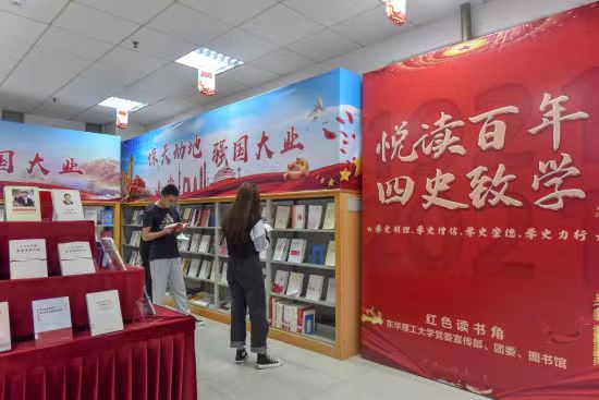 图书馆每年开展系列阅读推广活动,充分发挥图书馆阅读导向功能,开阔视野、陶冶情操,有效提高读者综合素质。在2020年江西省高校图书馆超星杯“执手书香季 相伴花开时 致敬抗疫英雄”作品征集活动中斩获绘画类作品全省唯一一等奖;2021年荣获第三届江西省高校图书馆超星杯“红色品读”作品征集活动“优秀组织奖”;2021年荣获江西省“知网杯”全省团体第一名,图书馆获得最佳组织奖;荣获“2021中南七省(区)高校学术搜索挑战赛”江西省“优秀组织奖”。同时,图书馆成立了读者协会,指导学生开展读书与演讲比赛等系列活动,建立“图书漂流站”,发挥废旧图书效能。在中国共产党建党百年之际,结合党史学习教育活动,充分挖掘馆藏红色资源,精心打造“红色读书角”,营造浸润式育人氛围,推动党史学习教育走深走实,先后接待校内单位20余批次、师生万余人次,获人民网、中新网等主流媒体宣传报道。(文/马智胜 图/杨宪苓)