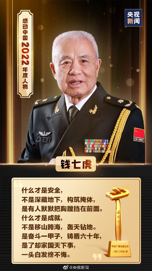 3月4日晚,“感动中国2022年度人物”揭晓,我校名誉校长、为国家铸造地下长城的“八一勋章”获得者钱七虎院士当选。