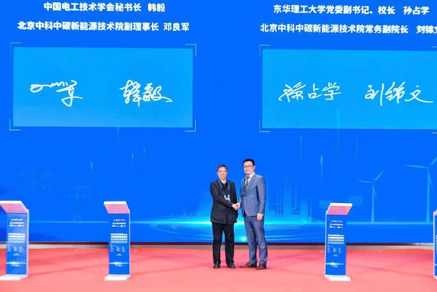 4月12日,由北京中科中碳新能源技术院等单位联合主办,我校参与协办的中国国际新能源及电力科技发展论坛在北京中关村举行。十二届全国政协副主席马培华,中国科学院院士李树森等出席会议。中国科学院、中国工程院、中国科学院大学、中国国家能源局等单位的专家及来自美国、法国等十余个国家和地区的能源科技机构代表现场参会。孙占学代表学校参加论坛,和与会嘉宾就绿色低碳能源科技、可再生能源发展、电力装备创新等议题展开了交流探讨。在论坛战略签约仪式上,孙占学、北京中科中碳新能源技术院常务副院长刘锦文代表双方正式签署战略合作协议。
