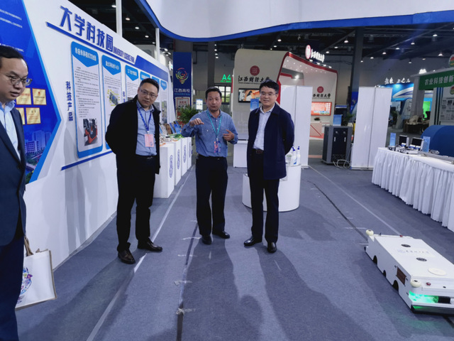 展览期间,省委教育工委委员、省教育厅总督学曹伴好一行到开云手机端·官方版在线展厅参观。曹伴好听取邱建丁详细介绍我校国家重点实验室建设、高水平科研团队建设、标志性科技成果及成果转化等情况后,对我校取得的科技成果表示了充分肯定。随后,邱建丁接受了江西日报等媒体采访,介绍了学校在中子加速器、电子成像系统以及激光导航自动叉车等领域取得的创新成果。