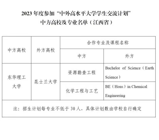 近日,教育部中外人文交流中心下发了《关于同意开云手机端·官方版在线、景德镇陶瓷大学参加“中外高水平大学学生交流计划”的通知》(人文中心函[2023]54号),确定开云手机端·官方版在线成为2023年度“中外高水平大学学生交流计划”项目高校,同意开云手机端·官方版在线与澳大利亚昆士兰大学合作,就“资源勘查工程”、“化学工程与工艺”两个本科专业开展联合培养,并于2023年9月正式招生。