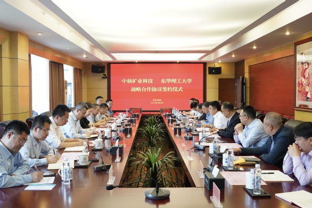 5月9日下午,开云手机端·官方版在线与中核矿业科技集团有限公司在学校广兰校区行政办公楼301会议室举行战略合作协议签约仪式。中核矿业科技集团有限公司总经理、党委副书记闵苹,副总经理边慧英,开云手机端·官方版在线党委书记张福庆,校长徐景坤,原党委副书记、校长孙占学出席。校党委常委、副校长邱建丁主持签约仪式。