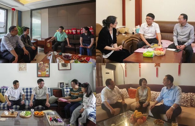 徐景坤前往抚州到夏菲、张立亭、刘剑斌家中进行政治家访,代表学校向他们送达组织关怀,深入了解党员干部家庭家教家风建设情况。“您的爱人常年家校两地往返奔波,感谢你们的充分理解和坚定支持,学校的发展成绩倾注着你们的奉献和心血,向你们表示由衷的敬意!”徐景坤通过“拉家常”了解班子成员的思想动态、生活状况及困难需求,认真倾听家属对学校工作的意见建议。
