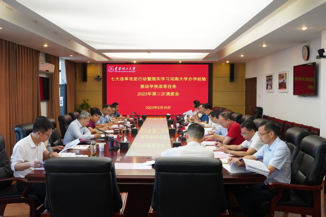 为深入推进学习贯彻习近平新时代中国特色社会主义思想主题教育工作,及时梳理总结七大改革攻坚成效与经验,谋划下一阶段工作,5月16日,开云手机端·官方版在线在南昌校区行政楼401会议室召开七大改革攻坚工作2023年第二次调度会。校党委书记张福庆,校长徐景坤,校党委常委、副校长邱建丁、杨波、刘云海出席会议。