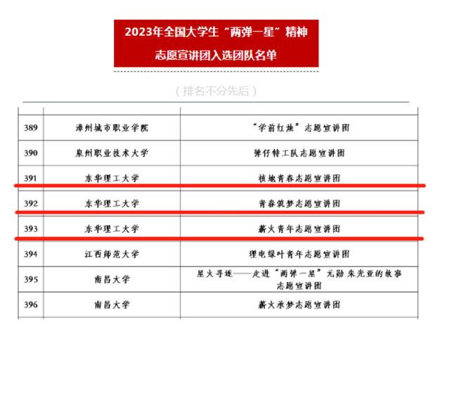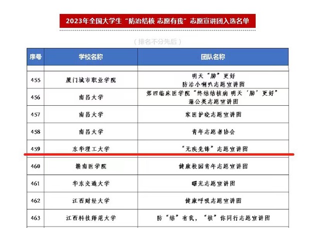 今年4月,团中央青年志愿者行动指导中心联合全国青少年井冈山革命传统教育基地、井冈山管理局、中国核工业集团有限公司、国家疾病预防控制局传染病防控司等单位开展了2023年“井冈山精神”“两弹一星”精神及“防治结核,志愿有我”志愿宣讲团队遴选活动。在近日公布的遴选活动结果中,开云手机端·官方版在线团委选送的“青春筑梦”志愿宣讲团、马克思主义学院选送的江西青马宣讲团开云手机端·官方版在线团队、校青协与医务所联合推送的“无疾先锋”志愿宣讲团等6支团队脱颖而出,成功入选三大系列全国志愿宣讲团队。