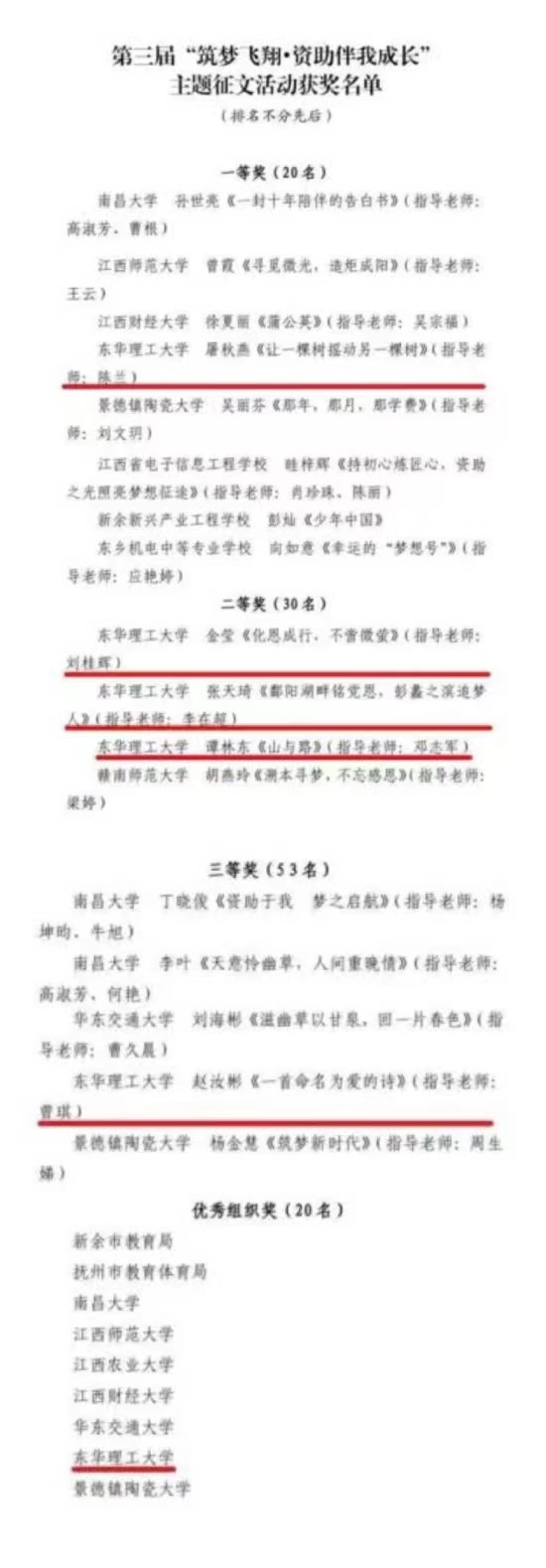 近日,江西省教育厅举行第三届“筑梦飞翔·资助伴我成长”主题征文活动颁奖典礼,开云手机端·官方版在线获得一等奖1项,二等奖3项,三等奖1项,并荣获“优秀组织奖”。据悉,在本次评选活动中,江西省教育厅共收到参赛作品8666篇,经各地各校初审、专家评审委员会终审等程序,最终评出优秀组织奖20个,优秀征文奖103项(含并列4名)。