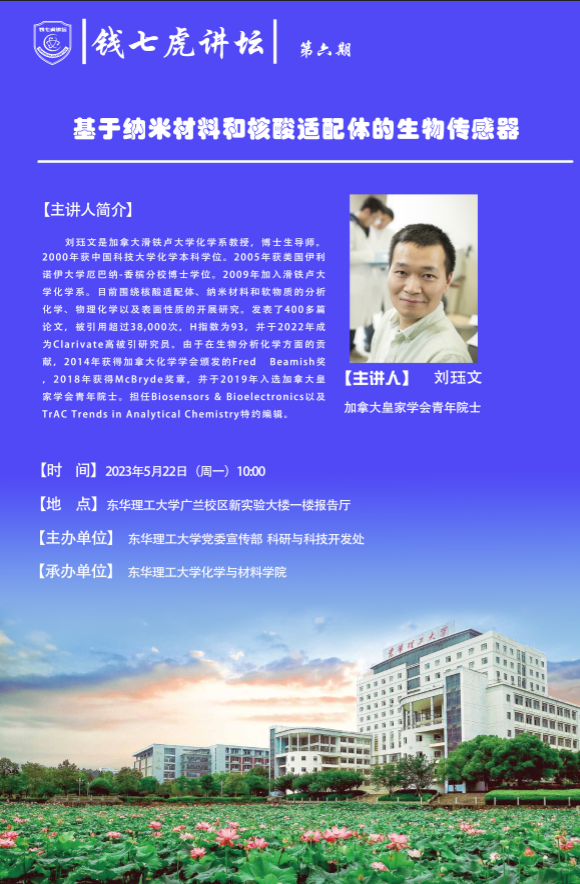 应化学与材料学院邀请,加拿大滑铁卢大学化学系教授,博士生导师刘珏文来到开云(中国),以“基于纳米材料和核酸适配体的生物传感器”为主题开展讲座。欢迎全校师生届时前往聆听。