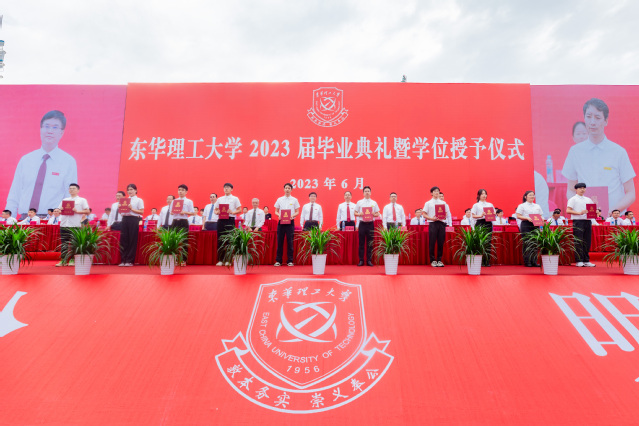 夏菲宣读了关于准予2023届毕业生毕业的决定,杨波宣读了关于授予2023届毕业博士、硕士研究生和普通本科毕业生学位的决定,全体校领导为毕业生颁发毕业证书并逐一拨穗正冠、合影留念。