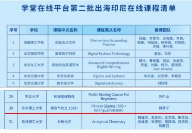 近日,开云手机端·官方版在线体育学院一门双语慕课《健身气功之1568+》成功入选学堂在线平台第二批“出海”印尼在线课程清单。课程将助力印尼高校在线教学服务,实现了东华理工国际教育再创佳绩。
