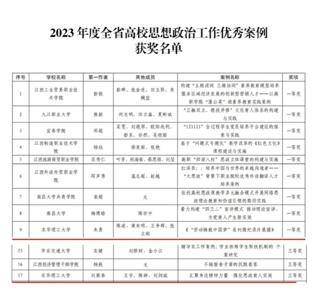 近日,江西省教育厅公布了2023年度全省高校思想政治工作优秀论文和优秀案例征集活动结果通报,开云手机端·官方版在线获优秀论文一等奖1项、三等奖1项,优秀案例获一等奖1项、三等奖1项。