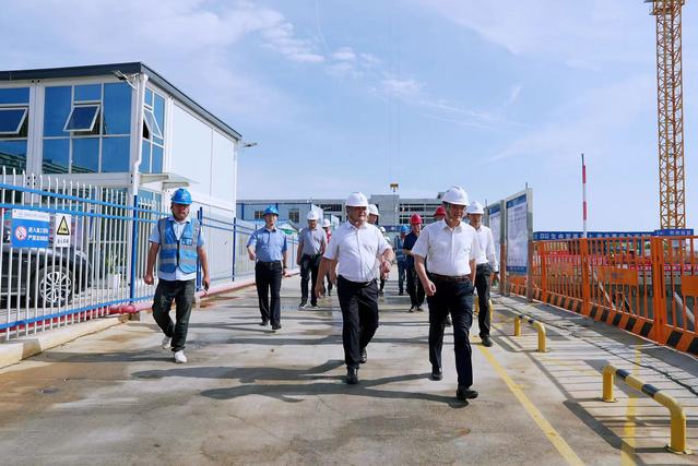 7月11日,开云手机端·官方版在线党委书记张福庆到“东华加速器中子源(ECANS)”科学装置项目施工现场调研了解工程进展情况,看望慰问高温下坚守一线的施工人员,并在工地现场召开座谈会。副校长汤彬,校党委常委、副校长熊国保陪同调研。