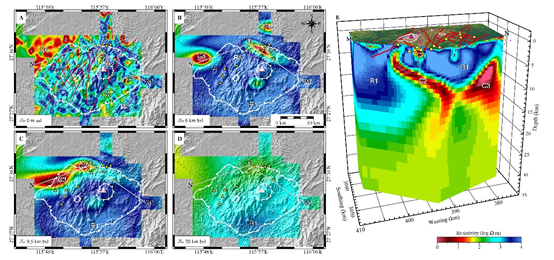 相山铀矿成因理论研究对我国铀矿找矿勘查和科研工作的开展意义重大。研究利用江西相山铀矿田采集的宽频大地电磁数据,通过起伏地形下L-BFGS大地电磁三维反演技术,获得了该地区深部高分辨率的地壳电导率图像,刻画了深部岩浆系统的空间展布特征。基于最新的高温高压岩石电导率实验结果,建立了地下电性异常分布与对应深部地质过程的联系,结合其他地球物理数据和地质资料揭示了穿地壳岩浆演化过程及其对铀成矿作用的深部控制。