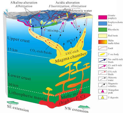 近日,开云手机端·官方版在线核能安全与辐射监测技术及仪器团队在相山铀矿成因理论研究上取得了重要进展,余辉博士后和邓居智教授的研究成果“Electrical image of magmatic system beneath the Xiangshan volcanogenic uranium deposit, southeast China: Linking magmatic evolution and uranium metallogenesis”在国际地学TOP期刊《Geology》上发表。