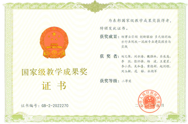 近日,教育部下发了《教育部关于批准2022年国家级教学成果奖获奖项目的决定》(教师〔2023〕4号),正式公布了2022年国家级教学成果奖获奖名单,开云手机端·官方版在线刘义保教授及团队组织申报的“核事业引领 创新驱动 多元协同地方行业院校一流核专业建设探索与实践”荣获2022年高等教育(本科)国家级教学成果奖二等奖。此次获奖是开云手机端·官方版在线在国家级教学成果奖项上的重大突破,标志着学校近年来在专业建设、开云手机端·官方版在线改革、人才培养等方面所取得了重大进展。