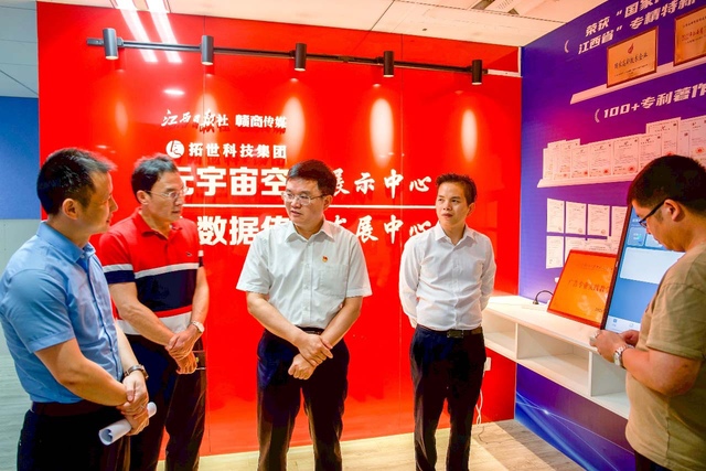 走访期间,张福庆一行实地参观了江西日报社赣商传媒新媒体运营中心与元宇宙空间展示中心等。