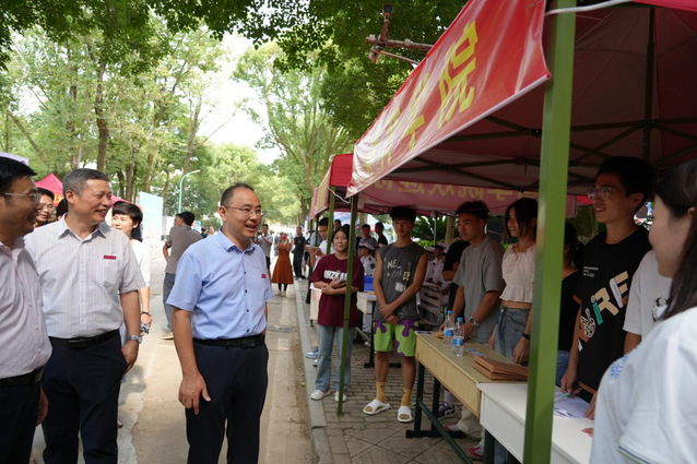 校领导一行先后走访了校门报到入口、迎新志愿服务站、学生社团展示区、各学院迎新点、新生宿舍等,仔细查看新生报到的各个环节工作,详细了解新生报到基本情况,与新生及家长亲切交谈。