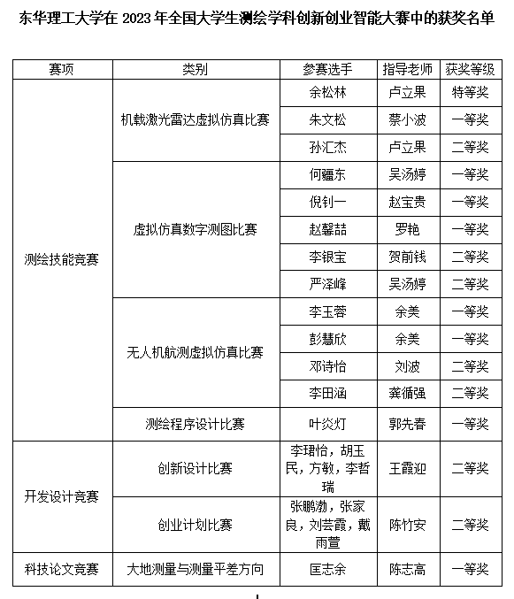 据悉,全国大学生测绘学科创新创业智能大赛列入了《2023全国普通高校大学生竞赛分析报告》竞赛目录,是国内测绘领域最具规模和影响力的大学生学科竞赛。本次大赛包括测绘技能竞赛、开发设计竞赛和科技论文竞赛等3个赛项,来自全国300余所高校的5500余名师生参加了此次大赛,特等奖、一等奖、二等奖的获奖比例分别为5%、10%、15%。经过激烈角逐,开云手机端·官方版在线学子在3个赛项中均获得佳绩,其中余松林在机载激光雷达虚拟仿真比赛专业组中获特等奖。