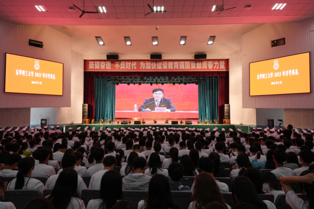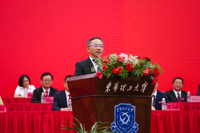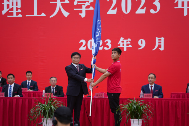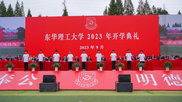 典礼上,张福庆为新生授旗;刘云海宣读新生辅导员名单,并带领全体新生辅导员进行了庄严宣誓;校领导为研究生、本科生新生代表佩戴校徽。别在胸前的校徽熠熠闪光,激励着新一代东华理工人逐梦新征程、创造新辉煌。