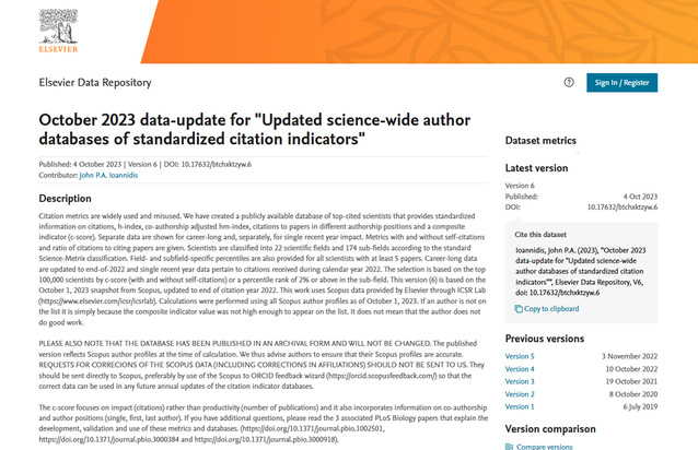 据悉,该榜单基于Scopus数据库,依据引用次数、h指数、共同作者修正后的hm指数、不同作者顺序的论文引用等指标综合评估,从全球960多万名科学家中遴选出世界排名前2%的科学家,包含22个学科领域和174个子领域。“终身影响力”聚焦于科研人员整个学术生涯迄今的影响力,“年度影响力”主要关注科研人员在该年度的学术成就。