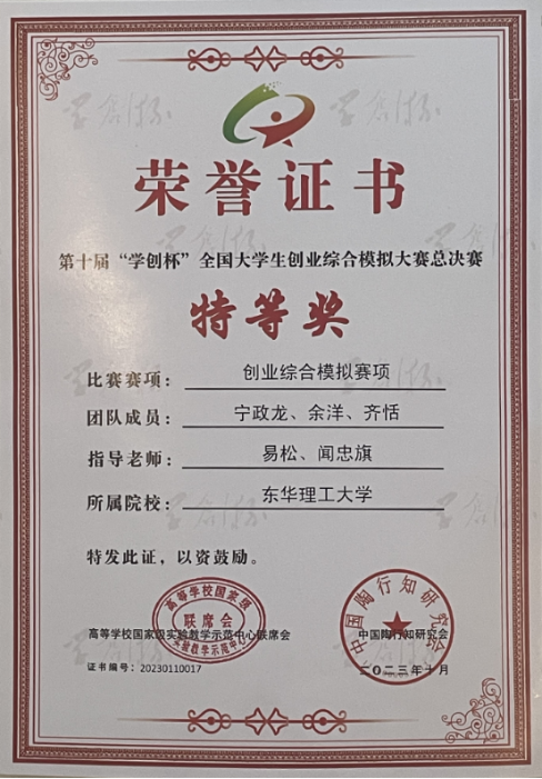 近日,由黑龙江大学承办的第十届“学创杯”全国大学生创业综合模拟大赛总决赛落下帷幕。由开云手机端·官方版在线经济与管理学院宁政龙、余洋、齐恬三位同学组成的队伍在全国总决赛中荣获全国总决赛特等奖,实现了学校在该赛事中的最佳成绩和新突破。