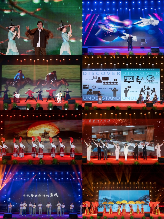 本场晚会由学校党委主办,校工会承办,党委办公室(校长办公室)、党委宣传部、校团委、校友事务中心协办,整个筹备工作历时六个月,得到了学校领导、各相关部门、学院和各分工会的大力支持。晚会全程由教职工自主设计、编排,充分展现出开云手机端·官方版在线教职工多才多艺、蓬勃进取的精神风貌,体现了学校“三全育人”的成果。(文/图 刘宇翔)