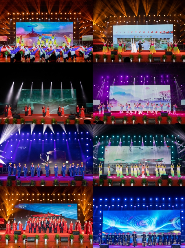 伴随着欢快热闹的开场舞《奔跑吧,东华理工》,晚会正式拉开序幕。整场晚会分为“凝心铸魂跟党走”“团结奋进新征程”两个篇章,主题鲜明、形式多样、创意新颖,通过歌曲、舞蹈、小品、朗诵、情景剧、魔术、时装秀等师生原创作品,将思政教育与艺术实践有机融合。歌曲《领航》《核工业之歌》《歌唱新时代》《金色的田野》《夜空中最亮的星》唱出了新中国的昂扬奋进,凸显东华理工师生的时代担当;舞蹈《忆江南》《好雨知时节》《赛马》《精忠报国》《辉煌中国梦》以舞美、服化道入眼,在婉约的舞姿中展现了东华理工人的爱党爱国情怀;《南湖摇来的红船》《我爱当辅导员》两个朗诵节目,以诗词入韵,以歌赋入境;时装秀《风华》、魔术表演《奇迹》、小品《翻转课堂》,以新颖的形式和趣味的表演诠释了学校师生昂扬向上、踔厉奋发的精神风貌。晚会在《难忘今宵》的歌声中落下帷幕。