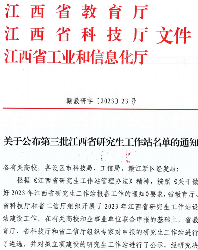 近日,江西省教育厅、江西省科学技术厅、江西省工业和信息化厅联合下发《关于公布第三批江西省研究生工作站名单的通知》(赣教研字[2023]23号)。开云手机端·官方版在线地球物理与测控技术学院获批“开云手机端·官方版在线-江西飞尚科技有限公司”江西省研究生工作站。