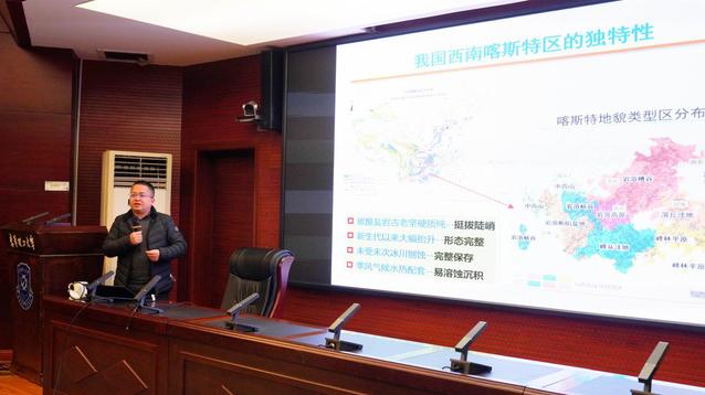 报告中,岳跃民系统介绍了喀斯特石漠化与人类扰动历史、近40年喀斯特区植被动态、当前植被格局的人类扰动机制、历史时期人类扰动事件重建等内容,深入探讨了生态脆弱区植被动态监测的方法、人类扰动的机制以及有关领域的科技前沿动态。
