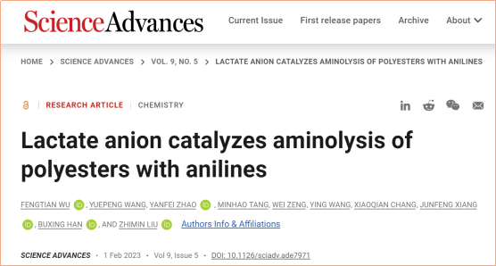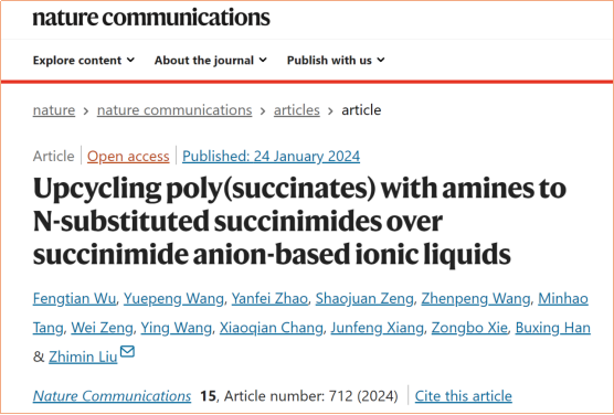 近期,开云手机端·官方版在线绿色化学与技术研究团队联合中国科学院化学所刘志敏研究员团队在聚酯类塑料的绿色降解领域研究中,取得了系列创新性成果。团队研究成果“Lactate anion catalyzes aminolysis of polyesters with anilines”在Science子刊《Science Advances》上发表,开云手机端·官方版在线化学与材料学院吴丰田博士为论文第一作者,中国科学院化学研究所刘志敏研究员为通讯作者;“Upcycling poly(succinates) with amines to N-substituted succinimides over succinimide anion-based ionic liquids在Nature子刊《Nature Communications》上发表,吴丰田博士为论文第一作者,刘志敏研究员为通讯作者。